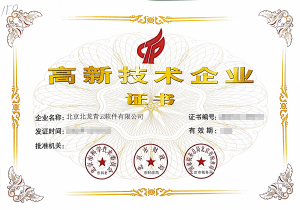 中關村高新技術企業證書
